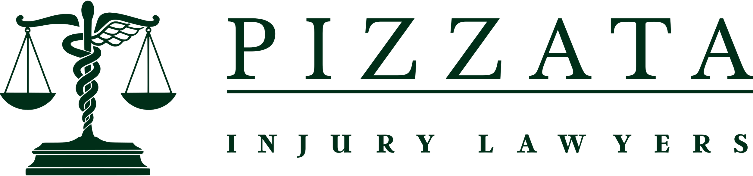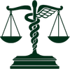 Pizzata Injury Lawyers Logo, the Rod of Asclepius and justice scales symbol, representing law and the medicolegal industry.